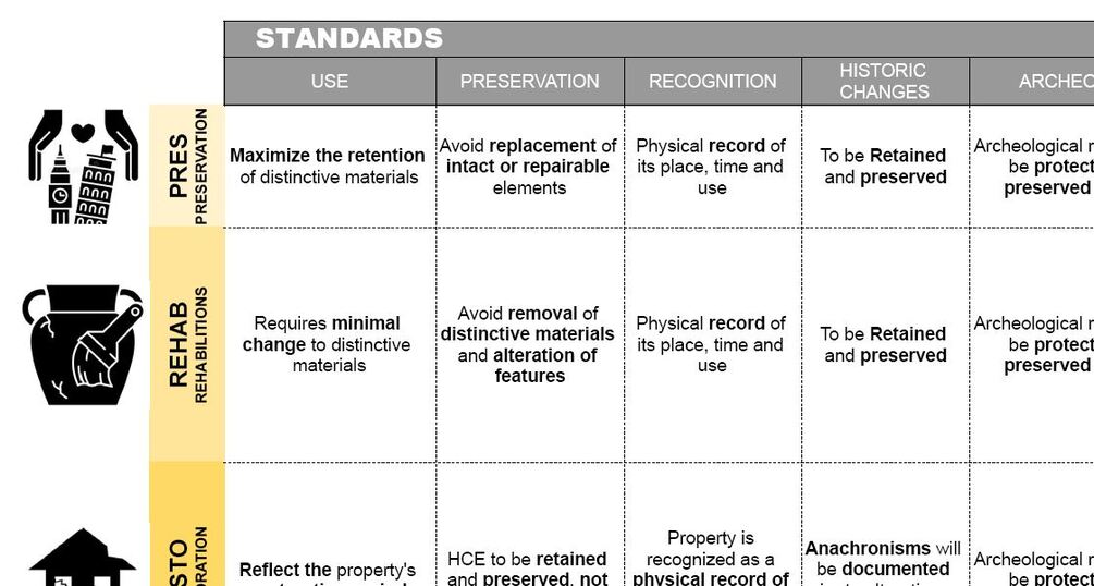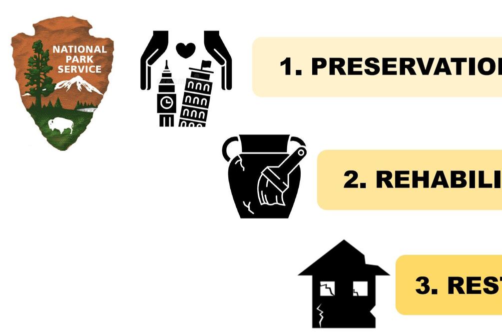 Reading the various primary sources of the NCARB ARE exams is no small task. Among them is understanding and differentiating the historic treatments outlined in The Secretary of the Interior’s Standards for the Treatment of Historic Properties — Guidelines for Preserving, Rehabilitating, Restoring & Reconstructing Historic Buildings from the National Parks Service
